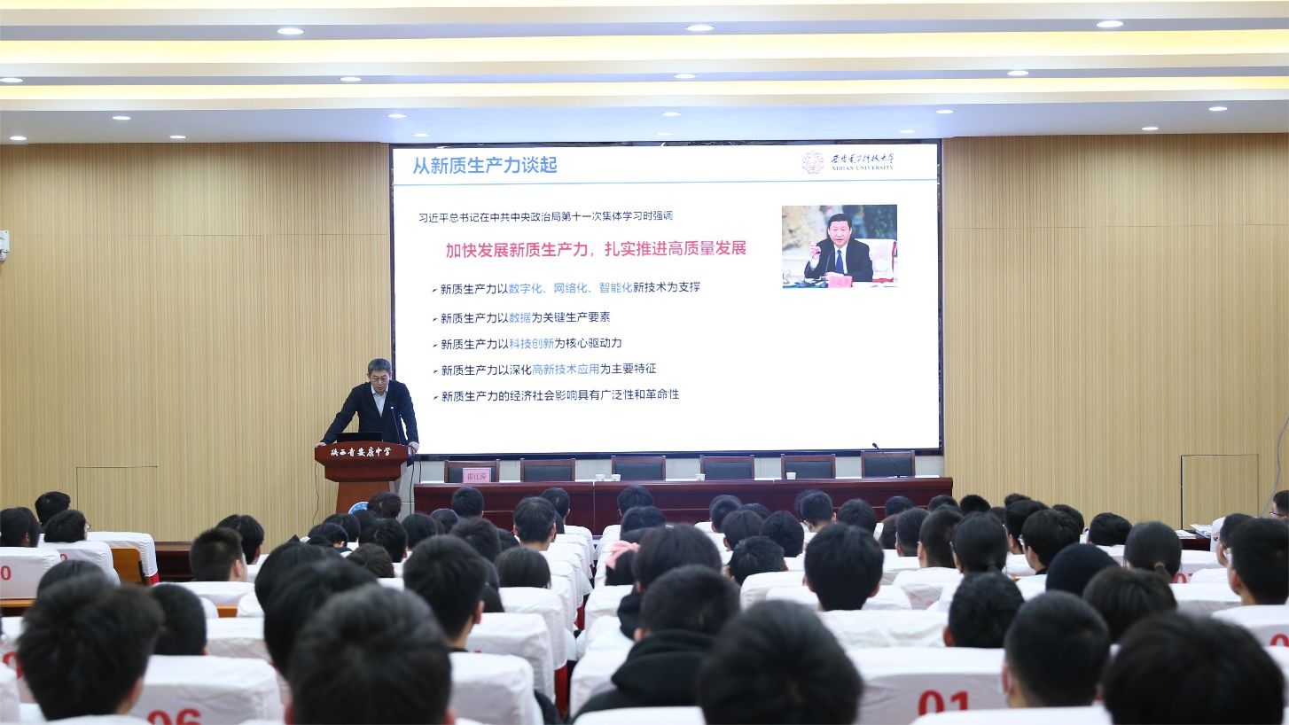 崔江涛以新质生产力为切入点,从宏观角度看数字化、计算角度看智能、国产数据库发展几个方面深入浅出讲述了计算机相关历史发展、最新进展和未来趋势,介绍了学院的学科结构和科研方向,通过分析国产数据库等“卡脖子”关键技术激发了广大学生科技报国的情怀、“强国有我”的壮志、为国奉献的动力。