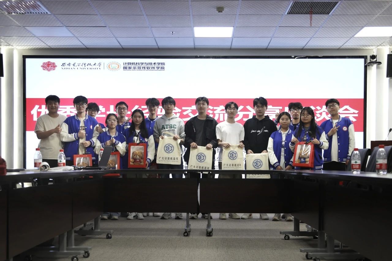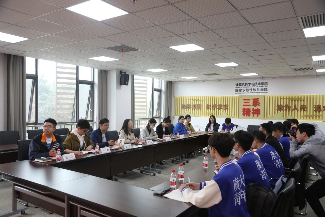 4月11日上午,学生工作交流座谈会在南校区网安大楼A1-222会议室召开。西电计算机科学与技术学院党委副书记黄成龙、辅导员党支部书记梁双杰、团委书记李栋、辅导员宫源以及广州大学计算机科学与网络工程学院党委副书记吕延明、辅导员肖章益、丁子旋参会。
