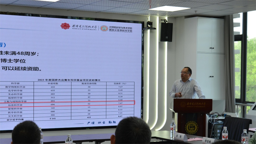 (通讯员 陈龙)为促进教师成长成才,发挥模范带头作用,弘扬科学家精神,5月15日,计算机科学与技术学院在新校区网安大楼A一区223报告厅举办华山领航计划高层次人才成长沙龙,国家级领军人才杜军朝教授作“躬耕教坛,强国有我—青年人才成长之路”报告,国家级青年人才马小科教授作“青年教师独立科研与人才申报体会”报告。学院党委书记李青山、执行院长崔江涛及班子成员和青年教师代表近三十人参加,沙龙由副院长赵韩强主持。