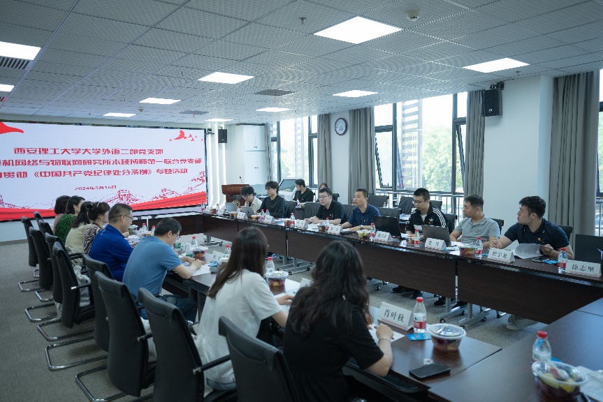 (通讯员 周小科)为贯彻落实习近平总书记关于党纪学习教育的重要讲话和重要指示精神,深入学习《中国共产党纪律处分条例》(以下简称“条例”),5月16日,计算机网络与物联网研究所本硕博师第一联合党支部与西安理工大学外语二部党支部围绕学习贯彻《条例》,开展跨校跨学科联学共建主题党日活动。计算机科学与技术学院副院长杨力、西安理工大学人文与外国语学院副院长黄勇和双方党支部师生党员参加了活动。