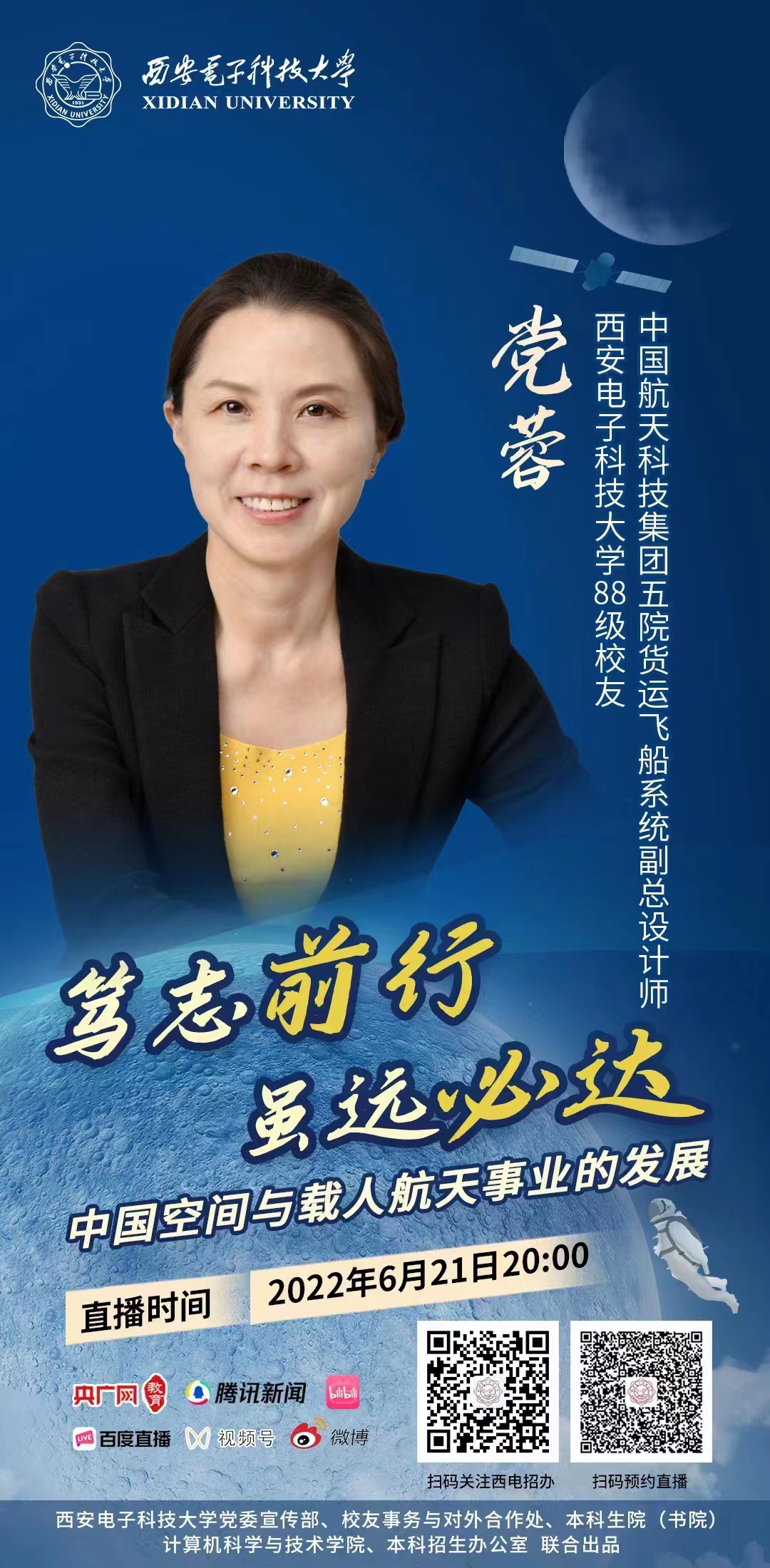 讲座预告 | 西电计科院88级杰出校友党蓉:笃志前行,虽远必达——中国空间与载人航天事业的发展