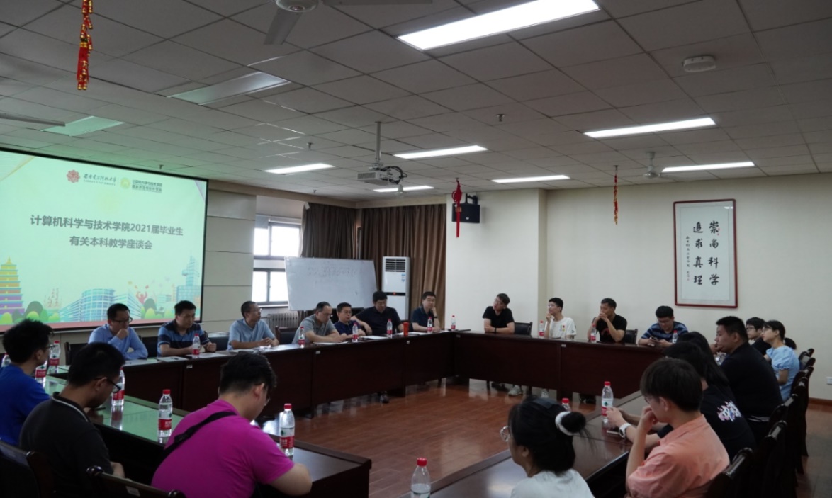 (通讯员 赵蕾)仲夏木繁,又是一年毕业季,又是师生别离时。为了解毕业生在上学期间对学院本科教学、毕业设计、实习的意见与建议,更好的提升学院本科教育教学质量,6月22日上午,计算机科学与技术学院在南校区G516进行了2021届毕业生为本科教学献言献策的专题座谈会。学院副院长万波教授,专业骨干教师李龙海、王小兵、范磊、付少锋、刘锦辉、马志欣,来自各个专业方向的38名本科毕业生代表参加了座谈会。座谈会由学院副院长万波教授主持。