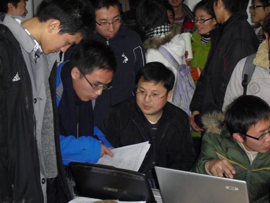 计算机学院第二十一届“星火杯” 大学生课外学术科技作品院赛于16日在计算机学院创新实验室G525隆重举行!计算机学院王卫东等四名老师担任评委,共600余名同学参加、观摩。