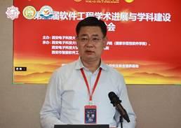 软件工程学科负责人、计算机科学与技术学院(国家示范性软件学院)党委书记、西安市智能软件工程重点实验室主任李青山教授致辞。李青山介绍了西电软件工程学科的发展简况,回顾了前两届研讨会的会议历程,简要介绍了本次会议的情况,并从三个方面强调了本次会议的特点。一是线上线下相结合,西电青岛计算技术研究院100多名师生线下参加,西电本部、杭州研究院、广州研究院的计算机与软件相关专业师生,高校与研究院所相关领域师生主要通过线上方式参与会议。二是会议在西电青岛计算技术研究院举行,将学科建设与研究生产教融合培养结合起来。三是本届会议与2021 CCF中国软件大会密切相关,西电软件工程学科作为大会承办方,与专委会一起也借助本次会议对大会的筹备情况进行商定。李青山最后希望通过本次研讨会可以加强不同学校间软件工程相关领域师生的学术交流,形成一个良好的软件工程学科互动平台。