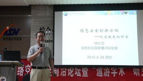 论坛期间,杨银堂副校长首先对各位专家学者百忙中莅临论坛表示了欢迎与感谢,并介绍了网络与信息安全学院及网络空间安全一级学科的基本情况,分析了网络空间安全对于国家安全的重大意义。论坛报告期间,受邀专家学者进行了精彩的前沿学术报告,涉及面向移动应用的密码思考、APT攻击及应对、信息安全从实践走向科学、云计算中的攻击与防御关键技术、网络空间安全若干发展趋势、网络空间中的安全服务与隐私保护等基础理论和关键技术等。